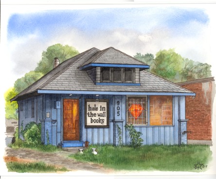 "Hole in the Wall" is watercolor and ink on board, 11" x 14".